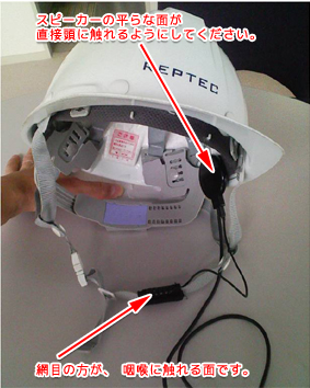 イアホンで耳をふさがないので、気導伝播の通常音声を確保しつつ明瞭な連絡音声を伝えます。